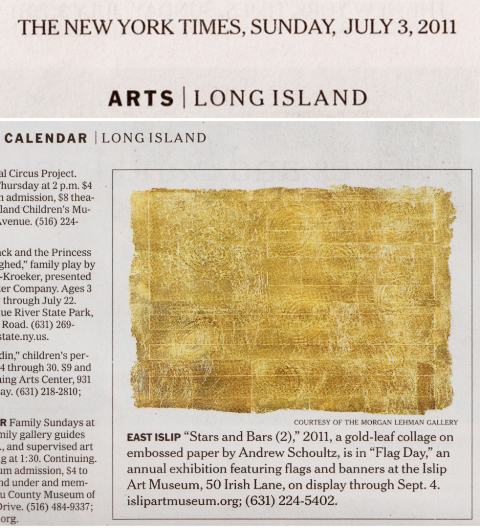 Melting Flag with Eyes, 2011 / Gold leaf and acrylic on embossed collage paper / 22 x 30 inches