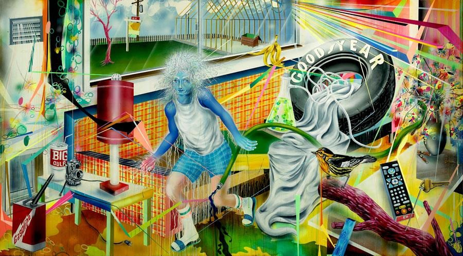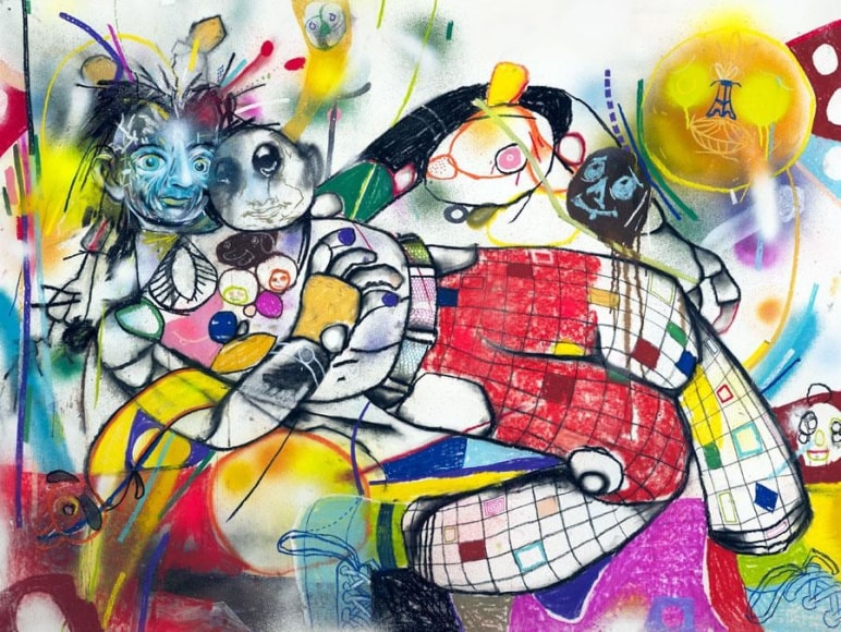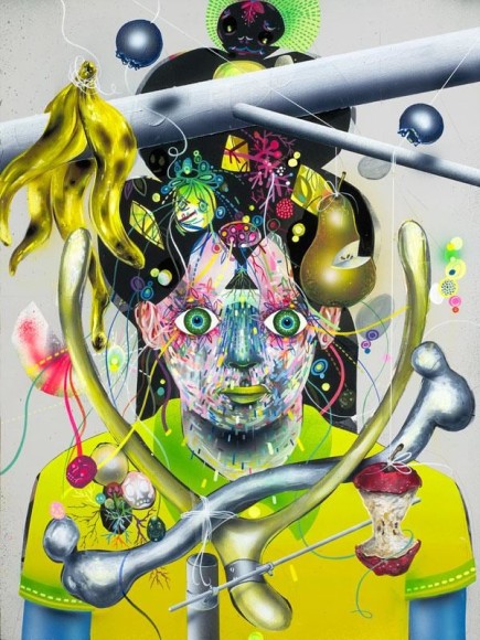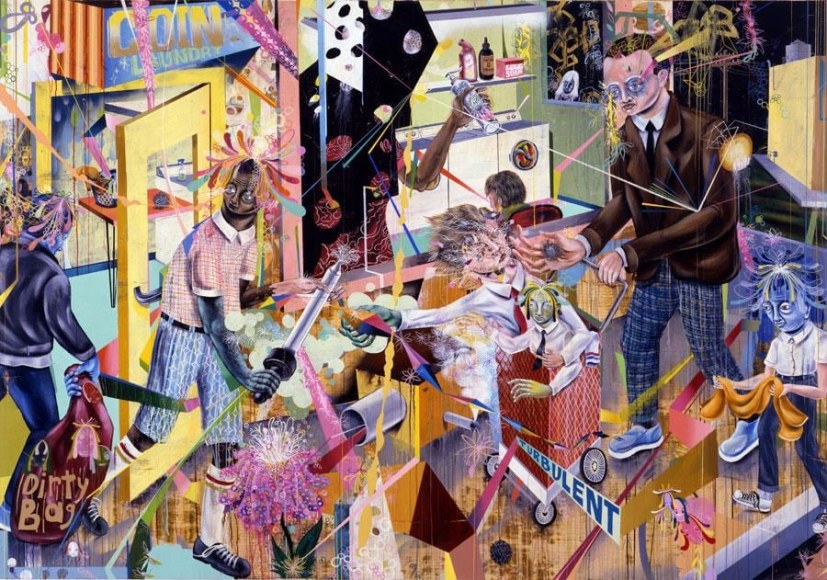 For brothers Rob and Christian Clayton, collaboration is more than a process: the concept of symbiosis resonates through every aspect of their paintings and installations. In a practice devoid of ego and restraint, the Clayton brothers develop intensely compacted narratives on an intuitive basis. Rob and Christian Clayton seldom work on the same canvas at the same time, or discuss their projects during their creation. Playing off of a uniquely unspoken synergy, they take turns inventing, adding to, and editing each piece, propelling their "stories" through spontaneous improvisation. Entwining their independent approaches, styles, and palettes, their works operate as co-authored epics, fusing the concept of self with the communal.