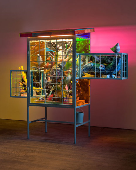 Clever to a Fault, 2011 / Powder coated steal, paint, foam, plexiglass and bird seed / W: 105.5 x H: 93.5 D: 32 inches
