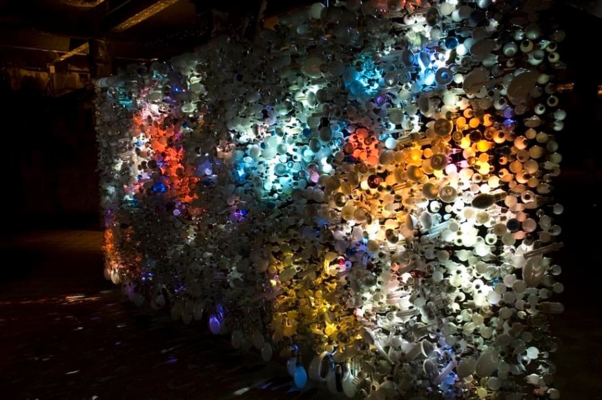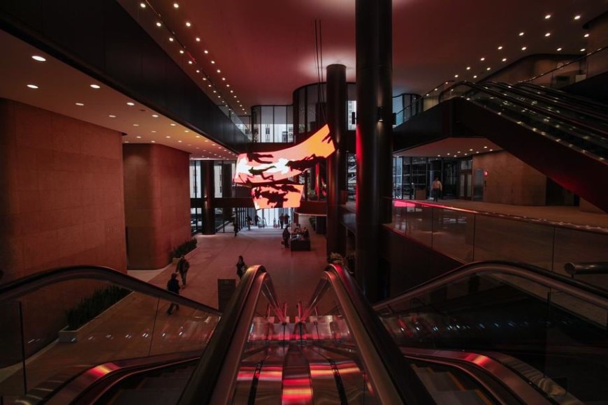 Daniel Canogar has created numerous public art pieces, including Waves, a permanent sculptural LED screen for the atrium of 2 Houston Center, Houston; Travesías, a sculptural LED screen commissioned for the atrium of the European Union Council in Brussels during the Spanish Presidency of the European Union in 2010; Constelaciones, the largest photo-mosaic in Europe created for two pedestrian bridges over the Manzanares River, in MRío Park, Madrid; Helix, a permanent LED sculptural screen made for Quantum of the Seas, a Royal Caribbean cruise ship andClandestinos, a video-projection presented on various emblematic monuments including the Arcos de Lapa in Rio de Janeiro, the Puerta de Alcalá in Madrid and the church of San Pietro in Montorio in Rome.