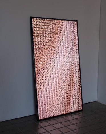 Daniel Canogar has created numerous public art pieces, including Waves, a permanent sculptural LED screen for the atrium of 2 Houston Center, Houston; Travesías, a sculptural LED screen commissioned for the atrium of the European Union Council in Brussels during the Spanish Presidency of the European Union in 2010; Constelaciones, the largest photo-mosaic in Europe created for two pedestrian bridges over the Manzanares River, in MRío Park, Madrid; Helix, a permanent LED sculptural screen made for Quantum of the Seas, a Royal Caribbean cruise ship andClandestinos, a video-projection presented on various emblematic monuments including the Arcos de Lapa in Rio de Janeiro, the Puerta de Alcalá in Madrid and the church of San Pietro in Montorio in Rome.