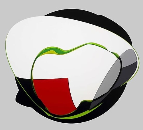 David Ryan (b. 1971, Texas) gleans inspiration from the slick colors and lines of cars, electronic gadgets and household appliances to transform mundane, undesirable MDF into luxurious, enticing wall-sculptures. By creating multiple (literal) layers, Ryan explores the way line, shape and shadow interact to produce perceptual conundrums that intrigue his viewer. Thus his conceptually multi-layered pieces speak not only of glossy consumer products but also refer to phenomenology and complex art theories. His work explores the dynamic between craft and production, art and design, man and machine.