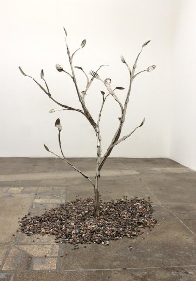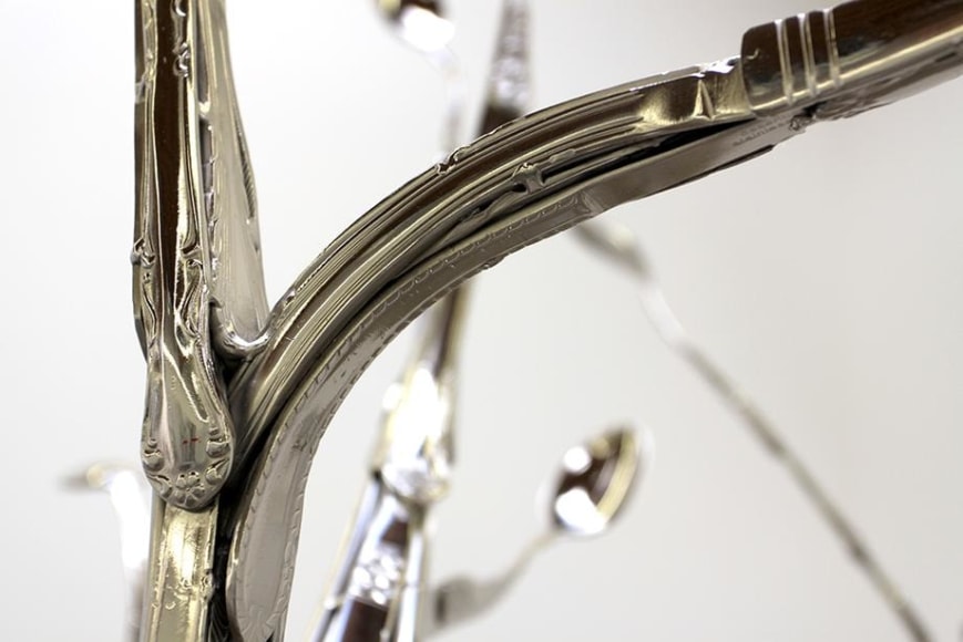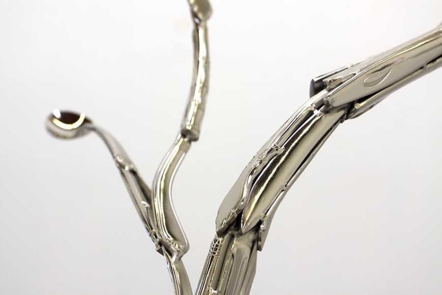 Grafted Settings (tree), 2015 / nickel plated flatware / 87 x 42 x 43 inches