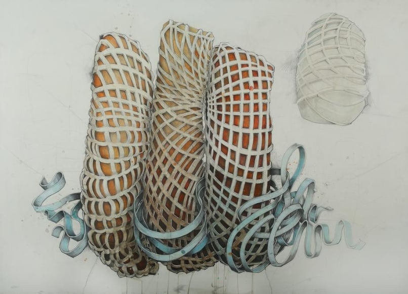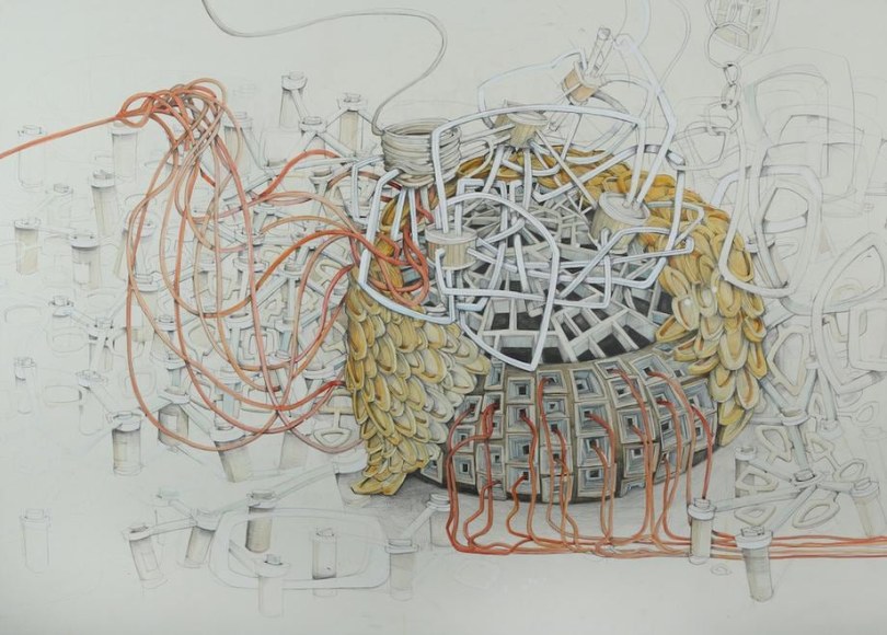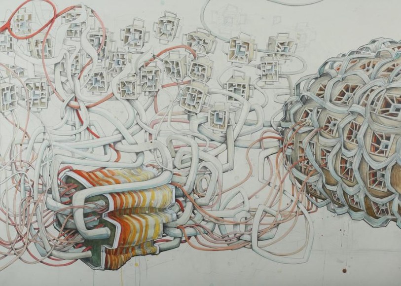 Extra Cord, 2014 / graphite & watercolor on paper mounted to panel / 42 x 58 inches
