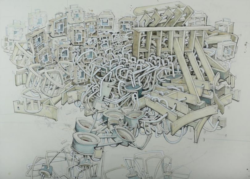 graphite & watercolor on paper mounted to panel / 42 x 58 inches