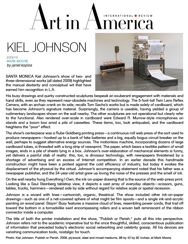 Johnson (b. 1975, Missouri) received his MFA at California State University, Long Beach (CA). He has received prestigious awards and honors including the Pollock-Krasner Grant, Durfee Foundation ARC Grant, and the CSULB Outstanding Creative Achievement Award. He has had solo exhibitions at the Taubman Museum of Art (VA), Irvine Art Center (CA), and the Creative Artists Agency (CA), in addition to group inclusion at the McNay Museum (TX), Torrance Art Museum (CA), Huntington Beach Art Center (CA), and the University Art Museum, Long Beach (CA). His work appears in several important public and private collections including the Creative Artist Agency (CA), Tubert International (CA), Steve Martin Collection (NY), Todd Oldham (NY), and Sprint World Headquarters (MO). Johnson currently lives and works in Los Angeles, California.