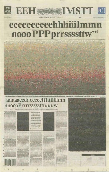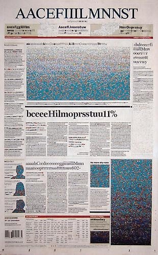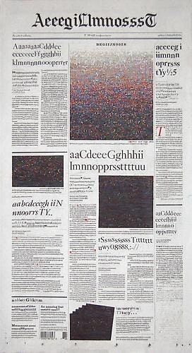 The Story Is One Sign, 2010 / reconfigured newspaper / 30 panels