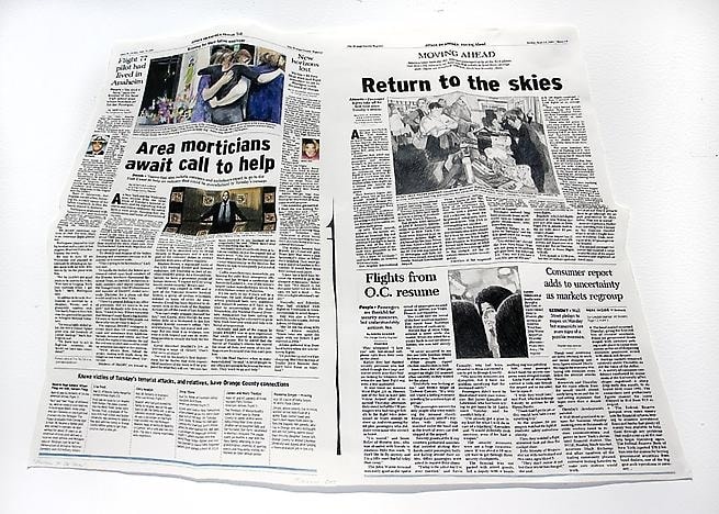 Playing on Eccentricity, 2008 / newsprint (New York Times) / 22.83 x 12.6 inches