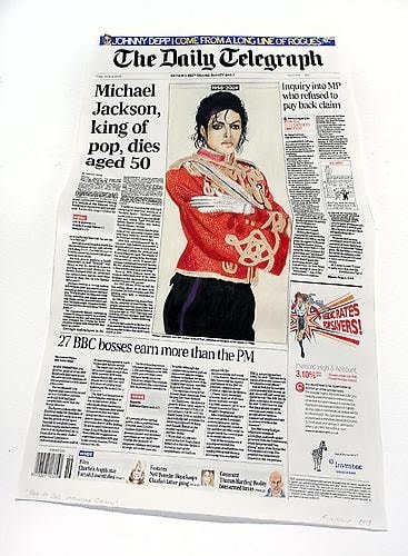 An Amazing Feat, 2008 / newsprint (Los Angeles Times) / 22.83 x 12.6 inches
