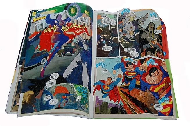reconfigured comic book (Superman) / 13.39 x 20.87 inches