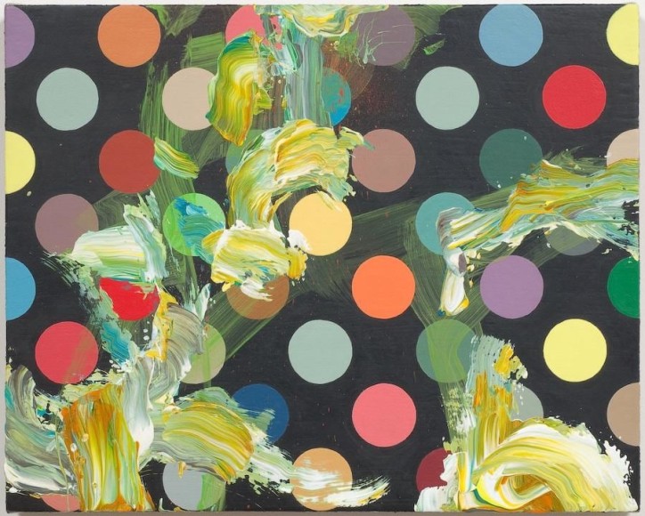 By collapsing of architecture, space, and art history, Lester Monzon's work dissects the notion of context. Colorful gesticulations conceal sections of rigid patterning, a tete-a-tete between abstract expressionism and hard-edge abstraction that implies a gentle lampooning of the taxonomic tradition. Monzon upends the formalism and segregation innate to the fine art world, and fabricates a composite genealogy of painting - a pithy resolution to an otherwise vapid debate. Monzon's luscious brushstrokes slyly creep into a Hirst-esque field of dots or Noland-like plane of stripes, like the resurrection of a once-declared dead practice through a satirical hand. In his recent work, Monzon applies this critique of contextual art to mark-making in public spaces; be it graffiti on tiles in a public bathroom, stains on the sidewalk, or the popularized notion of "street art."