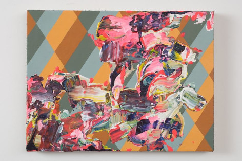 By collapsing of architecture, space, and art history, Lester Monzon's work dissects the notion of context. Colorful gesticulations conceal sections of rigid patterning, a tete-a-tete between abstract expressionism and hard-edge abstraction that implies a gentle lampooning of the taxonomic tradition. Monzon upends the formalism and segregation innate to the fine art world, and fabricates a composite genealogy of painting - a pithy resolution to an otherwise vapid debate. Monzon's luscious brushstrokes slyly creep into a Hirst-esque field of dots or Noland-like plane of stripes, like the resurrection of a once-declared dead practice through a satirical hand. In his recent work, Monzon applies this critique of contextual art to mark-making in public spaces; be it graffiti on tiles in a public bathroom, stains on the sidewalk, or the popularized notion of "street art."