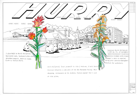 Mark Bennett's (b. 1956, Tennessee) whimsical works engage with pop culture and celebrity to an extreme degree. His blueprint lithographs of Baby Boom era sitcoms and popular television series depict the ultimate pairing of flight of fancy and stoical logic; the purely imaginary floor plans grounded by the dry format of an architect's design. His works are both pleasingly nostalgic and vaguely disconcerting in their premonition of a society obsessed by television and celebrity culture.