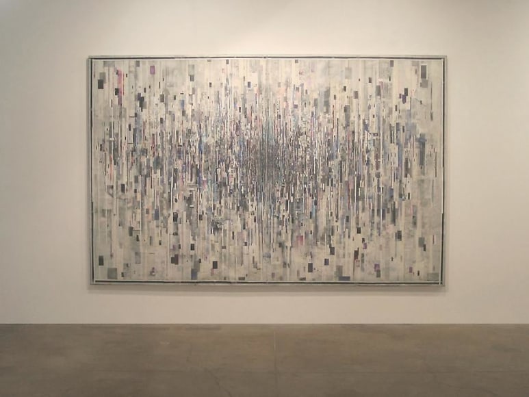 Atlas II, 2012 / Oil, enamel, acrylic, ink, lithograph, inkjet, vinyl, tape, paper, PVA, and Mylar on canvas / 90 x 140 inches