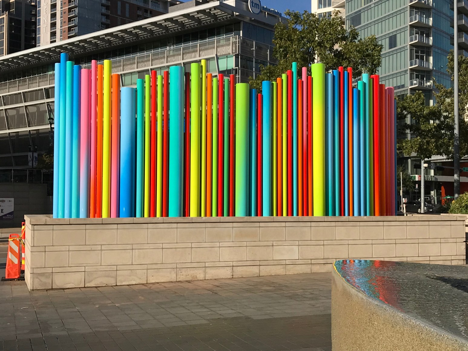 Enamel paint on steel, stainless steel, (128 pipes) / 27'- 5" x 86' - 8" x 17'- 1"