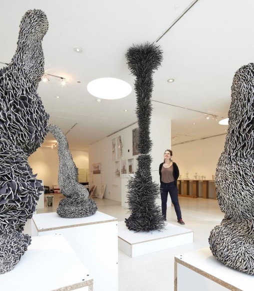 Zemer Peled's work examines the beauty and brutality of the natural world. Her sculptural language is formed by her surrounding environment and landscapes, and engages with themes of memories, identity, and place. The association of porcelain with grace, refinement, and civilization is turned on itself when we are confronted with this material in another state. When a porcelain form is broken down into shards, the brutality of its jagged edges is juxtaposed with its insistent fragility. The material becomes both violent and beautiful, hard yet breakable. When seen in the organic formations of Peled’s structures, a whole from the shards is recreated, this time estranged from its original context of neatness, tradition, and cultivation, but nonetheless unified by an overall cohesiveness of movement and composition.