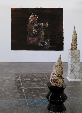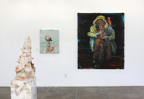 Mark Moore Gallery is proud to present "Salty Air," the third Los Angeles solo exhibition from local artist Allison Schulnik. Showcasing her distinctively textured canvases, ceramics, and works on paper, "Salty Air" stages a narrative born of the wistful sailor's tale – its characters loyal to the tragic, farcical beauty consistent within Schulnik's evolving cast. Yielding to the capricious plight of her unlikely protagonists, Schulnik embraces their trials and imperfections through dignified portraiture, a ceremonious haven in an otherwise inhospitable world.