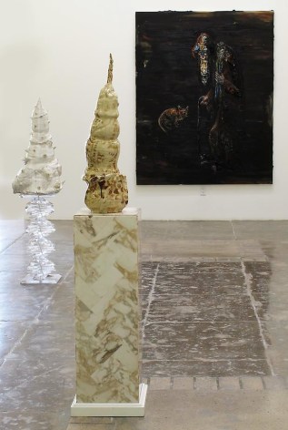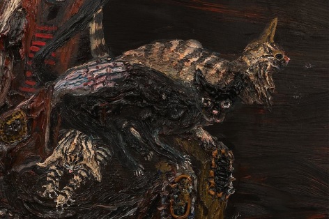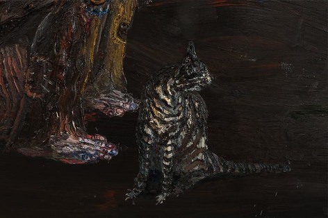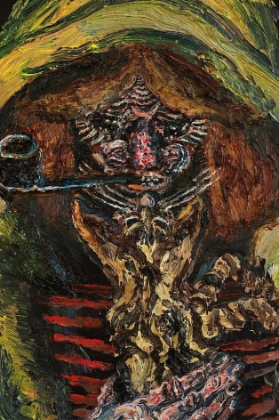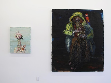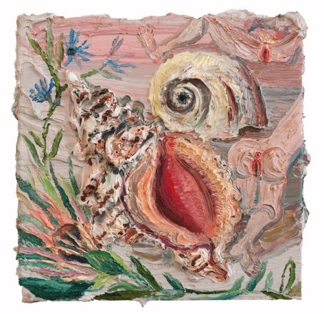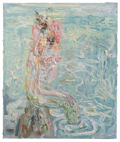 Drawing upon divergent renditions of the same fable, The Little Mermaid (as presented in its original incarnation by Hans Christian Anderson, and its jovial Disney counterpart) notably serves as influence upon Schulnik's recent works. She candidly portrays elements of the contrasting versions as an allusion to the irreconcilability of seafaring life, her mermaids and sailors personifying the vulnerability inherent to want. The sailor is free from society, but privy to isolation, while the mermaid shares a discordant existence between acceptance and solitude. Further modeled upon autobiographical figures and experiences, Schulnik's pensive characters exude a muted nostalgia, at once otherworldly in their awkwardness, yet eerily familiar in their strife. As James Ensor paints the grotesque surrealism of the human condition, Schulnik confronts the theatricality of being, her heavily impastoed canvases forging dramatic terrains both sinister and endearing. Her tactile backdrops prompt us to navigate the uncharted mindscape of her creatures and misfits, and deliver an allegorical odyssey equivalent to our own.