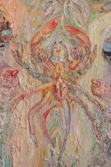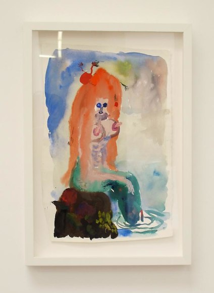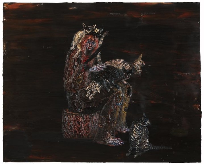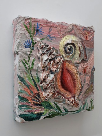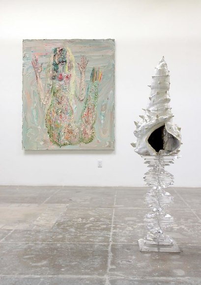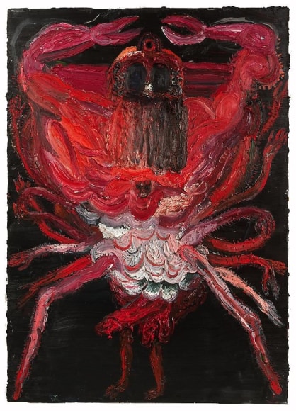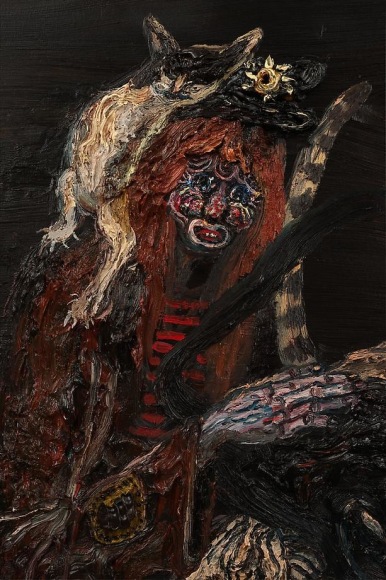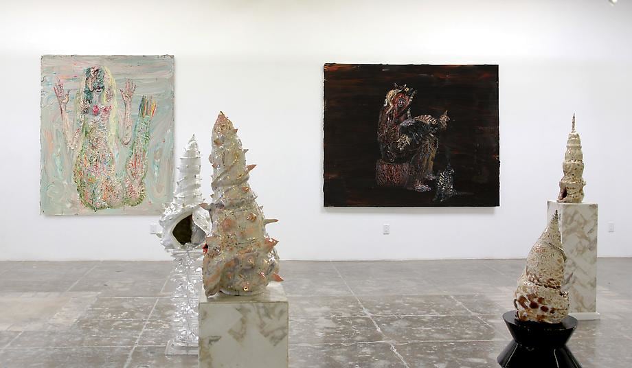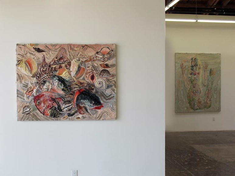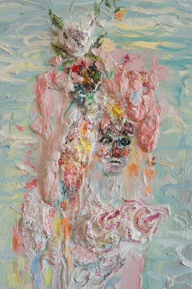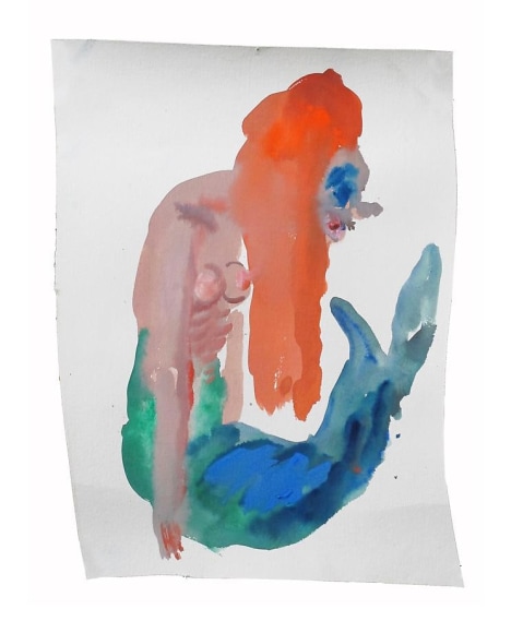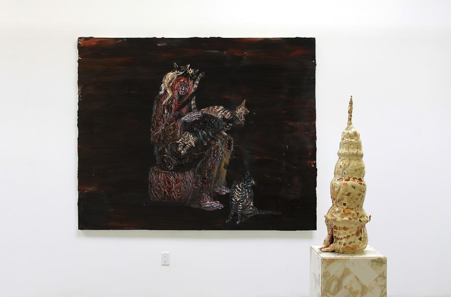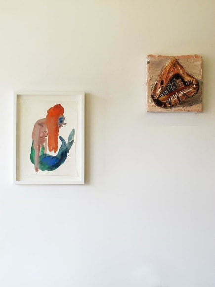 Drawing upon divergent renditions of the same fable, The Little Mermaid (as presented in its original incarnation by Hans Christian Anderson, and its jovial Disney counterpart) notably serves as influence upon Schulnik's recent works. She candidly portrays elements of the contrasting versions as an allusion to the irreconcilability of seafaring life, her mermaids and sailors personifying the vulnerability inherent to want. The sailor is free from society, but privy to isolation, while the mermaid shares a discordant existence between acceptance and solitude. Further modeled upon autobiographical figures and experiences, Schulnik's pensive characters exude a muted nostalgia, at once otherworldly in their awkwardness, yet eerily familiar in their strife. As James Ensor paints the grotesque surrealism of the human condition, Schulnik confronts the theatricality of being, her heavily impastoed canvases forging dramatic terrains both sinister and endearing. Her tactile backdrops prompt us to navigate the uncharted mindscape of her creatures and misfits, and deliver an allegorical odyssey equivalent to our own.