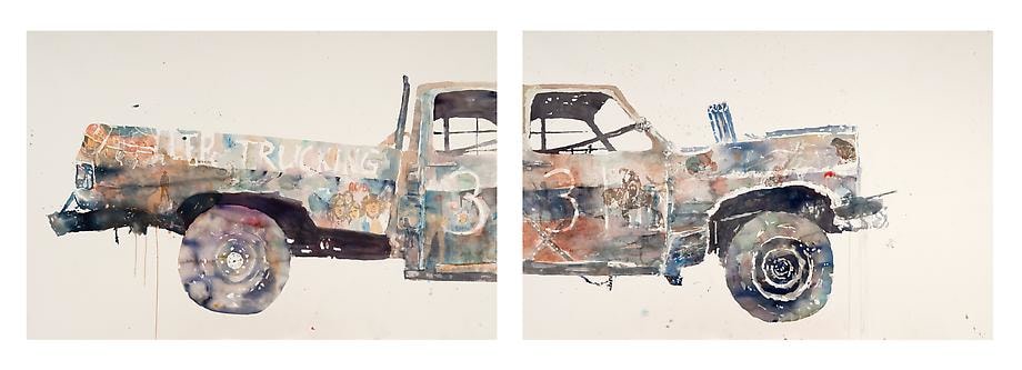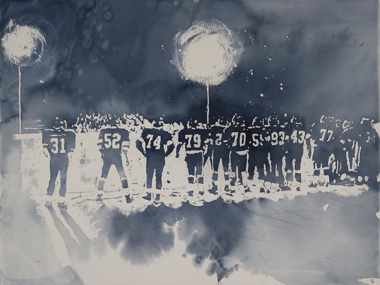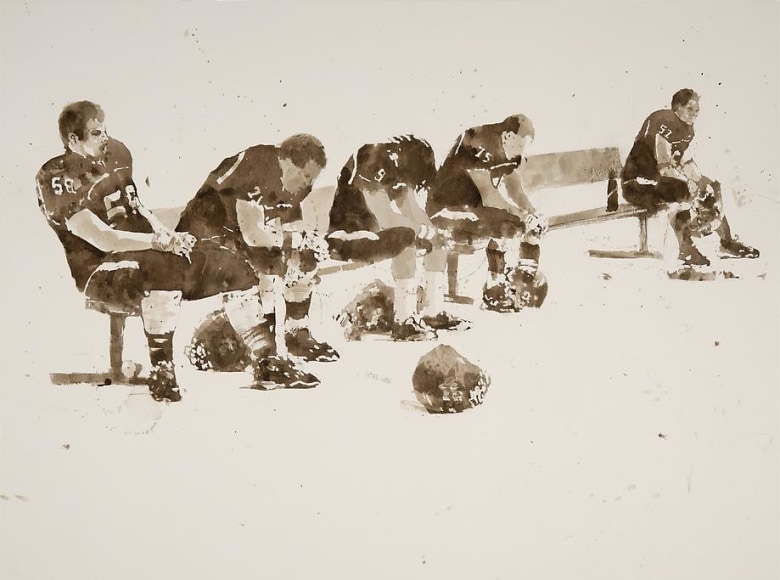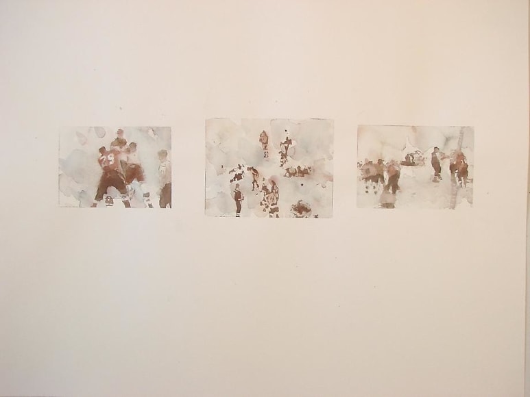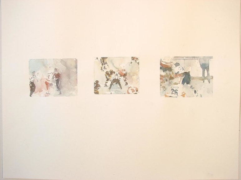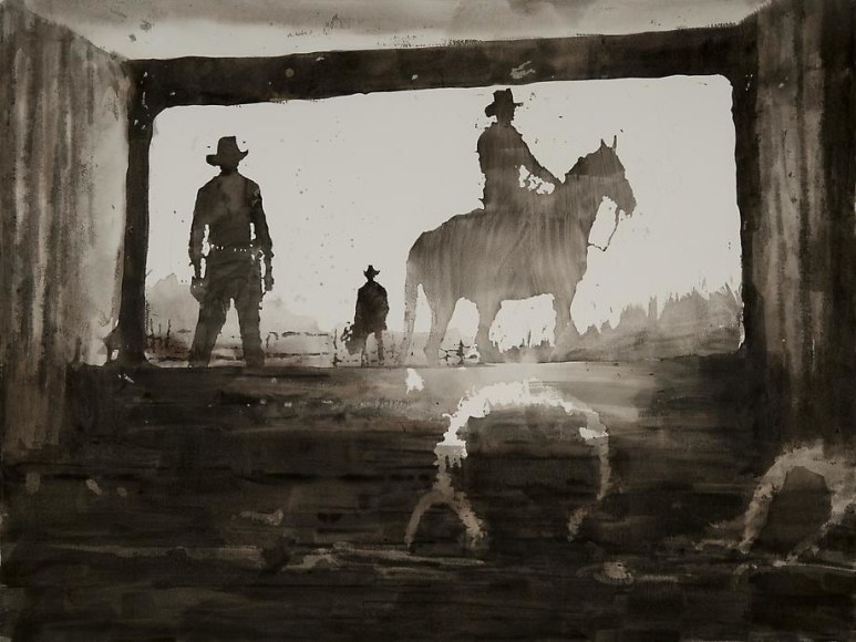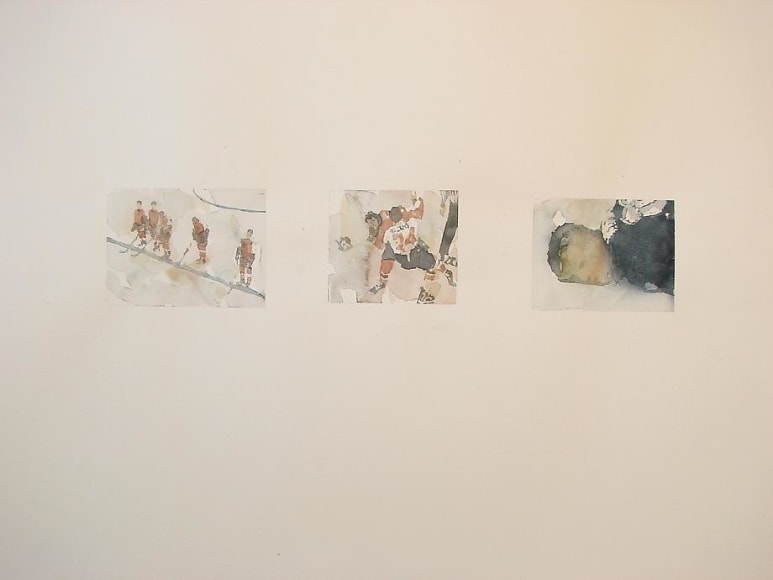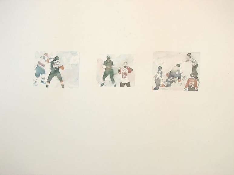 Hilliard's distinctive command of a cinematic narrative is at once romantic and disconsolate, oftentimes crafting bittersweet vignettes that grapple with notions of sexuality, faith, mortality and nostalgia. His subtle manipulation of perspective and depth alludes to a similar distortion in our recollected memories, wistful snapshots drawn upon to form a chronicled identity unique to the artist yet relevant to all. Similarly, Rathman's mottled watercolors illustrate iconic emblems of strength and struggle, luminary and the underdog. Loosely rendered scenes beckon to their pop cultural origins – films, album covers and advertisements alike – while also acting as collated excerpts from a lost Americana memoir. Mirage-like figures seem pulled from the hazy recesses of a sentimental male mind, or from the filmic cutting room floor as Rathman delineates composites of the modern idol. Together, Hilliard and Rathman produce a sagacious survey of the tradition of hero-worship, and foster insightful tension between conventional and unorthodox imagery of virility. With a tempered use of cliché and common expectation, Hilliard and Rathman's work yield frank complexities often overshadowed by mythic constructs of machismo.