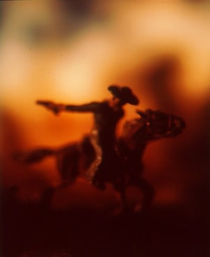 The Mark Moore Gallery is proud to present new Polaroid photographs by David Levinthal and new paintings by Vernon Fisher. Levinthal has updated his highly stylised images of the Wild West with a cinamatic twist. Fisher is presenting his first group of paintings in Los Angeles in four years, with a new minimal vocabulary. Both artists have conjured the ’ordinary’ with the sparest of means and with their most complex touch.