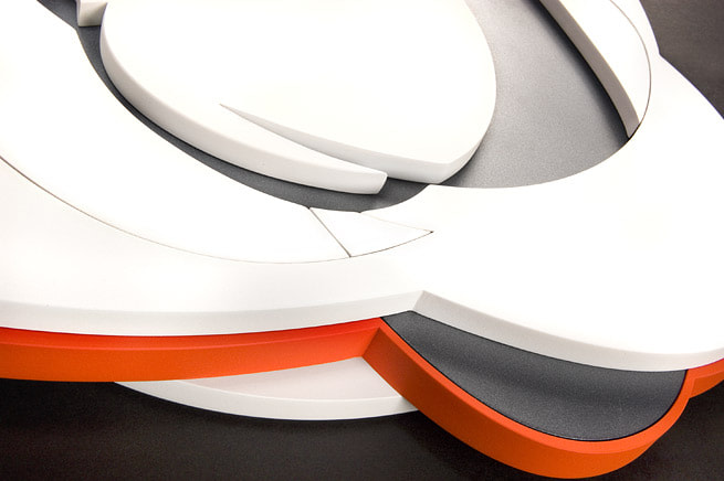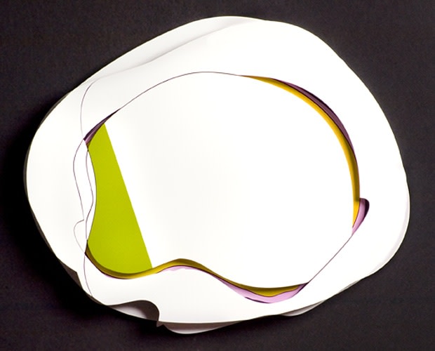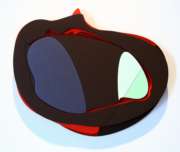 Beginning with quickly executed sketches of mechanical consumer products, such as the seams of a car or household electronic devices, Ryan transforms his drawings into meticulously crafted laser-cut paintings. Shaping and layering multiple sheets of medium-density fiberboard, Ryan's circular spray-painted shapes create lines and shadows that quietly reference the abstract formalism of Ellsworth Kelly while hinting at the playfulness of Richard Tuttle. "No list of artists with similar commitments," comments Los Angeles Times critic David Pagel, however, "explains the magic at work in Ryan's refreshingly sophisticated paintings." Interested in what the artist considers as "the way artists' lines divide things and machines seams connect things" Ryan's paintings explore the relationship between the artist, technology, consumer and product in a lyrical and sensual examination of painting in the twenty-first century.