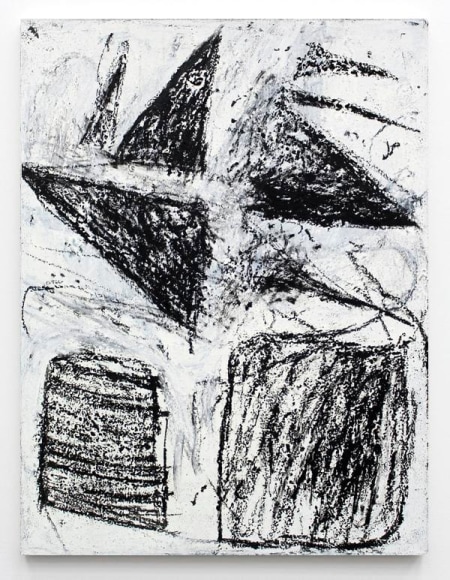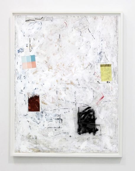 Navigating the tension between serenity and chaos, Hart presents abstracted renditions of physicality; both space and objects become reconstituted gestures or collage. Like blurry snapshots or excerpts from Hart's active process, elements of his compositions coalesce into a survey of tactility. Abrupt line work, colorful snippets of studio debris, pieces appropriated from his daughter’s sticker cache, and smudged, quilt-like patterns in oil paint, all form loose aesthetic references to Twombly, Joan Mitchell, and Mondrian, but retain a distinctive sense of process and impulse. Through Hart's methodical destruction and re-building of materials, the cut collages presented in "KISS IDIOMS" appear as edited, autobiographical assemblages, while Hart's large-scale paintings relay a more primal, latent psychology. Through both techniques, Hart poetically explores the cyclical, nuanced complexity of being, as well as the relationship between chance and kismet.