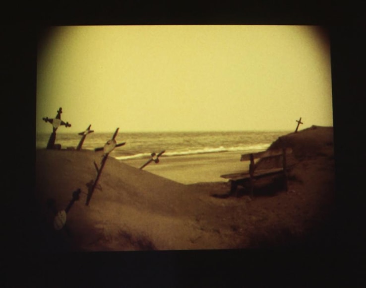 In Azzarella's newest project, F.W. Murnau's 1922 German Expressionist classic "Nosferatu" undergoes a comprehensive transformation. Adapted from Bram Stoker’s Gothic novel “Dracula" (1897), Nosferatu is considered a silent masterpiece of psychological terror. Over the course of two years, the artist has painstakingly erased all evidence of the characters - including their reflections and shadows - from the original footage, along with the film’s infamous soundtrack and expository intertitles. Azzarella has re-built the vacant space left by his extractions pixel by pixel, constructing an alternative rendition of the film that exemplifies his mastery of digital construction through perfectly accurate imitation and craft. Added to each panorama is a reconstructed version of the original Erdmann scores and ambient noises that reflect the atmosphere of the original film. The outcome is an uncanny 90-minute portrayal of the original classic that identically matches Murnau's lighting, film quality, and resolution, but abolishes its pioneering storyline and figures. Despite the absence of these key elements, the film's eerie and dark nature is practically amplified through Azzarella's manipulations—doors open mysteriously, curtains sway, and dawn breaks to ominous music, heightening the tension of implied action. The viewer watches each scene with the feeling of anticipation, the desire to see something spectacular occur without the gratification. With Count Orlok absent, the Gothic architecture and gloomy backdrops assume a characterization of their own, unsettled in much the same way as the viewer—waiting for the film’s antagonist to emerge yet unable to coax him into existence. Viewing the video, one gets a sense of how existential characters, Vladimir and Estragon must have felt as they waited for Godot.