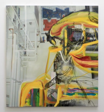 A fixation shared by society at large, the contemplation of past events and relationships ultimately shapes our psychology moving forward – as a flicker of fond reminiscence, ardent shame, or jovial glee can be activated by a single sensory cue. With a purposeful cognizance, Dildine mines these runes for the underlying traits that forge our shared humanity: the humor found in the compromising, the endearment found in the aggravating, or the conflict found in the absent. Like vibrant lens flares or chemical emulsions, varying textures of acrylic, oil, and spray paints transform Dildine’s personal snapshots from the past into new striking compositions. While photos slowly fade, or become lost in a digital void, memories often transmute over time. Dildine’s work employs the ubiquitous aesthetic of twentieth century amateur home photography in contrast with his vigorous applications of bold color palettes and textures. At times, these marks evoke a ghostly presence in the canvas, while other works allude to a visceral outburst. Despite a permeating cultural obsession with the manipulation of digital photography – both in terms of constructed identity and edited reflections of the past – Dildine’s creations feel refreshingly organic, as their composition develops in reaction to the sentiment of the picture. While implying the absurdity of our incessant self-analysis and contemplation of the past, Dildine creates experiences that are at once present and bygone through a purposefully disjointed lens.