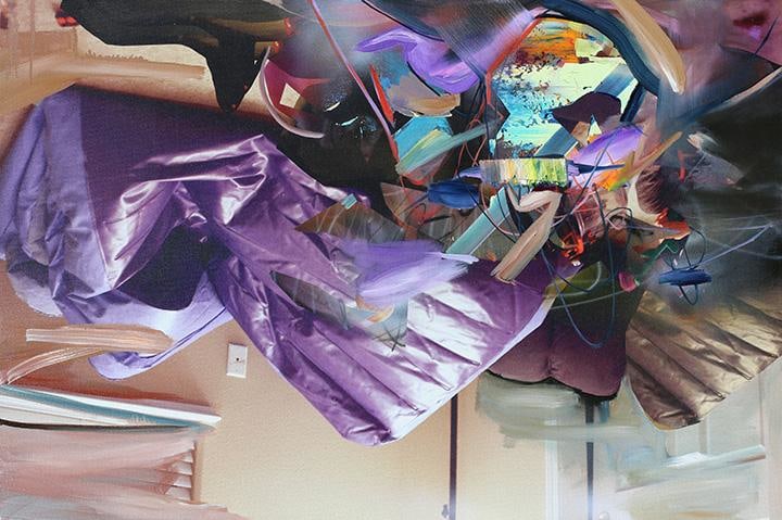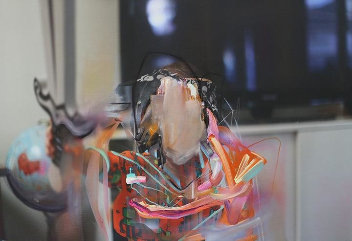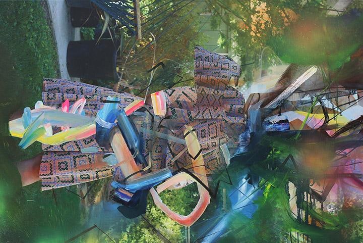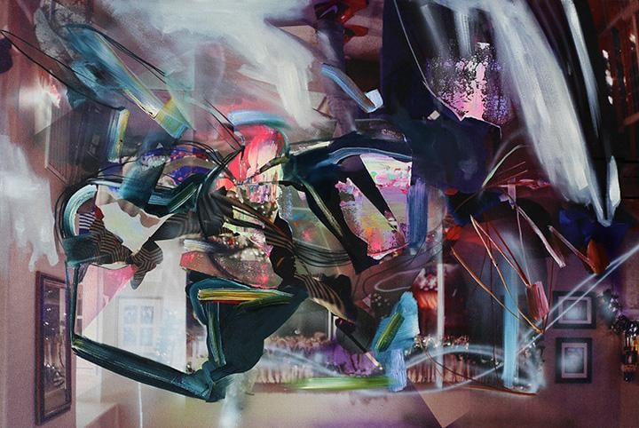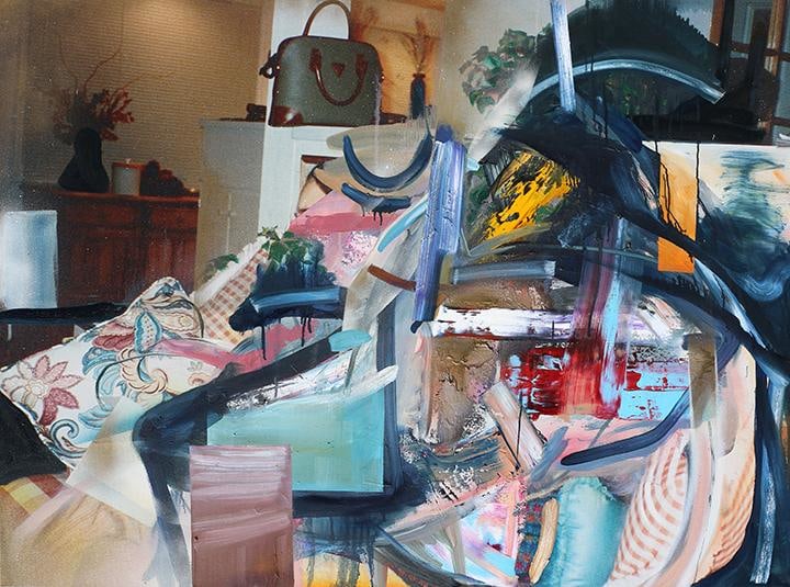 Dildine’s paintings typically begin with a photograph from his childhood. Seeking to make this image universal, the photograph is printed on canvas and painted over—often until the original image is completely obscured, or nearly unrecognizable. The result is a dynamic abstraction, with hints of ‘80s familial iconography. His visceral movements and accelerated brushstroke are loaded with sensual energy, harkening to the Ab-Ex days of pure delight and mystery in paint's materiality. By placing these gestures on top of faded, kitschy, (and sometimes cloying) memorabilia. The end result is a fixation shared by society at large: the contemplation of past events and relationships. Dildine mines these memories for the underlying traits that forge our shared humanity: the humor found in the compromising, the endearment found in the aggravating, or the conflict found in the absent. His painterly swaths are as instinctive as the family photos they conceal; his vivid palette alludes to the glaring absurdity of our incessant self-analysis and examination of the past. In his most recent body of work, Dildine embellishes elements or patterns within the original image in order to create a farcical confrontation with the past - a perspective that is both critical and celebratory. Through this carefully disjointed lens, Dildine creates experiences that are at once present and bygone as he whimsically harnesses the nature of our being.