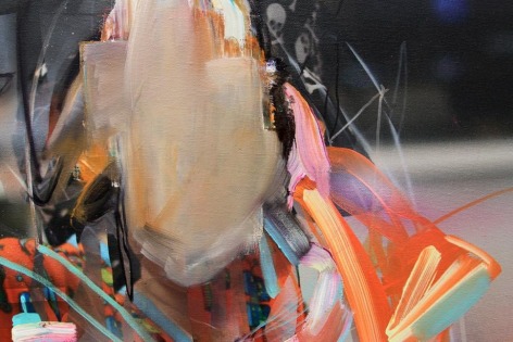 Dildine’s paintings typically begin with a photograph from his childhood. Seeking to make this image universal, the photograph is printed on canvas and painted over—often until the original image is completely obscured, or nearly unrecognizable. The result is a dynamic abstraction, with hints of ‘80s familial iconography. His visceral movements and accelerated brushstroke are loaded with sensual energy, harkening to the Ab-Ex days of pure delight and mystery in paint's materiality. By placing these gestures on top of faded, kitschy, (and sometimes cloying) memorabilia. The end result is a fixation shared by society at large: the contemplation of past events and relationships. Dildine mines these memories for the underlying traits that forge our shared humanity: the humor found in the compromising, the endearment found in the aggravating, or the conflict found in the absent. His painterly swaths are as instinctive as the family photos they conceal; his vivid palette alludes to the glaring absurdity of our incessant self-analysis and examination of the past. In his most recent body of work, Dildine embellishes elements or patterns within the original image in order to create a farcical confrontation with the past - a perspective that is both critical and celebratory. Through this carefully disjointed lens, Dildine creates experiences that are at once present and bygone as he whimsically harnesses the nature of our being.