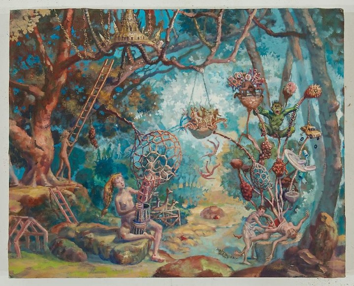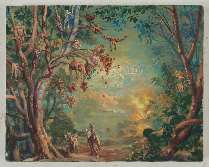 As with her previous self-portraits, Heffernan’s recent paintings function as metaphors of a surrogate-self, engendering both the intimate world of the psyche, as well as the societal undercurrents of the present moment. Heffernan’s tableaux are rife with idiosyncratic references that draw the eye deep into a cryptic, mythical puzzle of overabundance waiting to be solved. Personal as they may appear, each composition confounds the singular interpretation, inviting the viewer to hypothesize connotations and frameworks uniquely their own. The artist welcomes us to meander about her private world, beckoning us to consider the state of contemporary consciousness - a mindset defined by its break with past certainties as we contemplate how drastically different our world looks from our 21st century vantage point. Unlike the old masters, whose visual vocabulary the artist references stylistically, Heffernan approaches the genres of still life, portraiture, and landscape much in the same way as a surrealist might. Reminiscent of the works of Dorothea Tanning, Heffernan is less as an empiricist or positivist merely recording reality, but more of a surveyor of the subconscious—the definitive architecture of our reality. Simultaneously, this concentration on personal mythos is filled with an impassioned atmosphere, in which an irrepressible force, namely nature, threatens to reclaim its own narrative. The result is an ominous parable, as if from a Grimm's fairy tale, warning us of our follies, and foretelling an apex at which biology and humanity will collide.