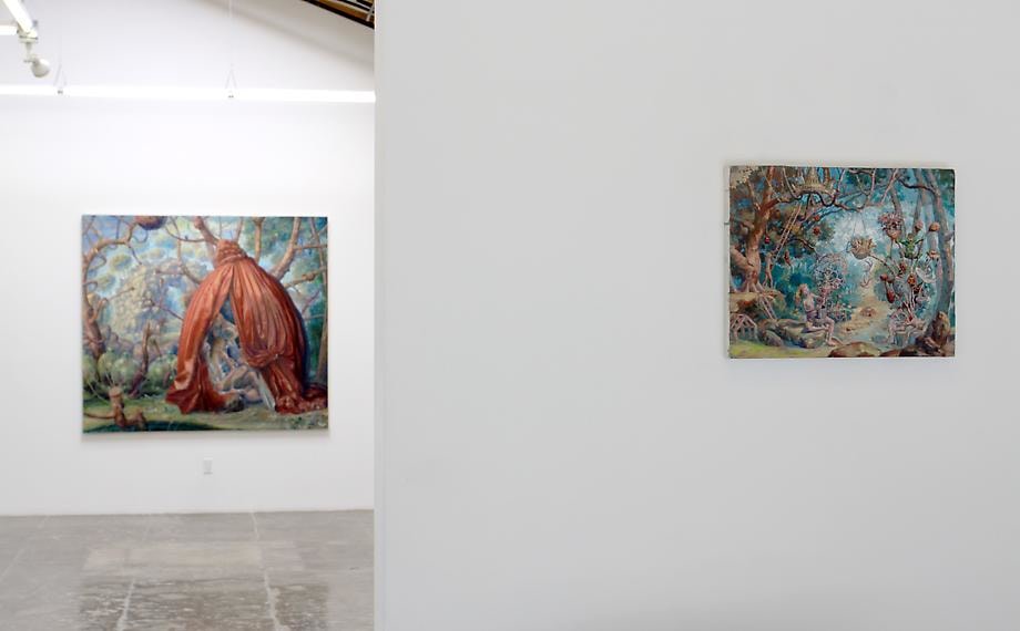 As with her previous self-portraits, Heffernan’s recent paintings function as metaphors of a surrogate-self, engendering both the intimate world of the psyche, as well as the societal undercurrents of the present moment. Heffernan’s tableaux are rife with idiosyncratic references that draw the eye deep into a cryptic, mythical puzzle of overabundance waiting to be solved. Personal as they may appear, each composition confounds the singular interpretation, inviting the viewer to hypothesize connotations and frameworks uniquely their own. The artist welcomes us to meander about her private world, beckoning us to consider the state of contemporary consciousness - a mindset defined by its break with past certainties as we contemplate how drastically different our world looks from our 21st century vantage point. Unlike the old masters, whose visual vocabulary the artist references stylistically, Heffernan approaches the genres of still life, portraiture, and landscape much in the same way as a surrealist might. Reminiscent of the works of Dorothea Tanning, Heffernan is less as an empiricist or positivist merely recording reality, but more of a surveyor of the subconscious—the definitive architecture of our reality. Simultaneously, this concentration on personal mythos is filled with an impassioned atmosphere, in which an irrepressible force, namely nature, threatens to reclaim its own narrative. The result is an ominous parable, as if from a Grimm's fairy tale, warning us of our follies, and foretelling an apex at which biology and humanity will collide.