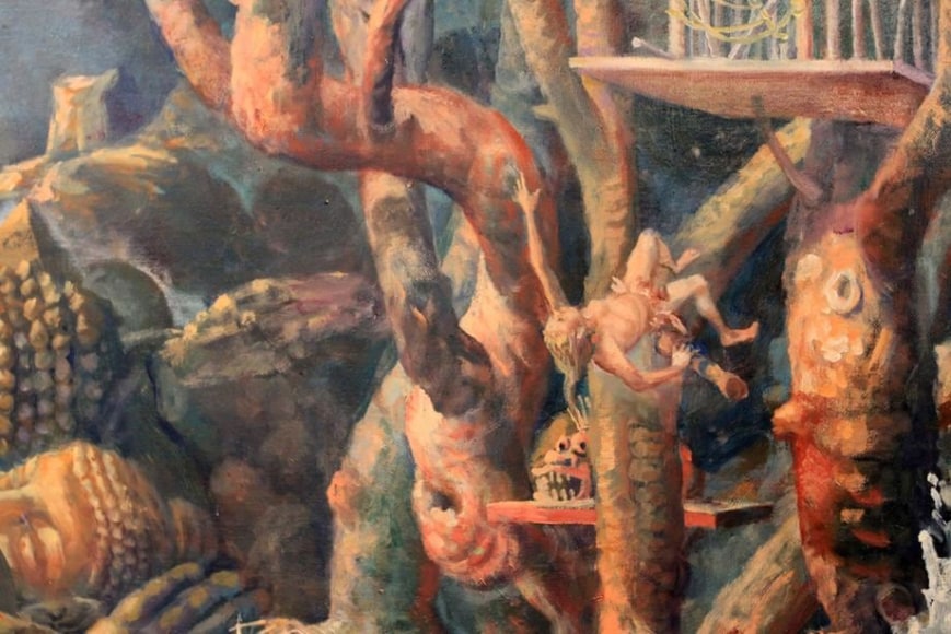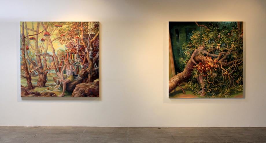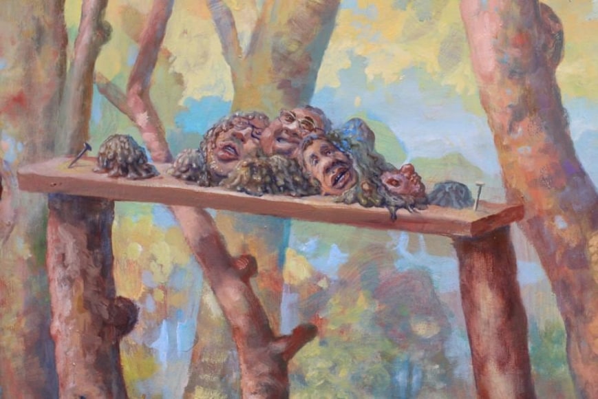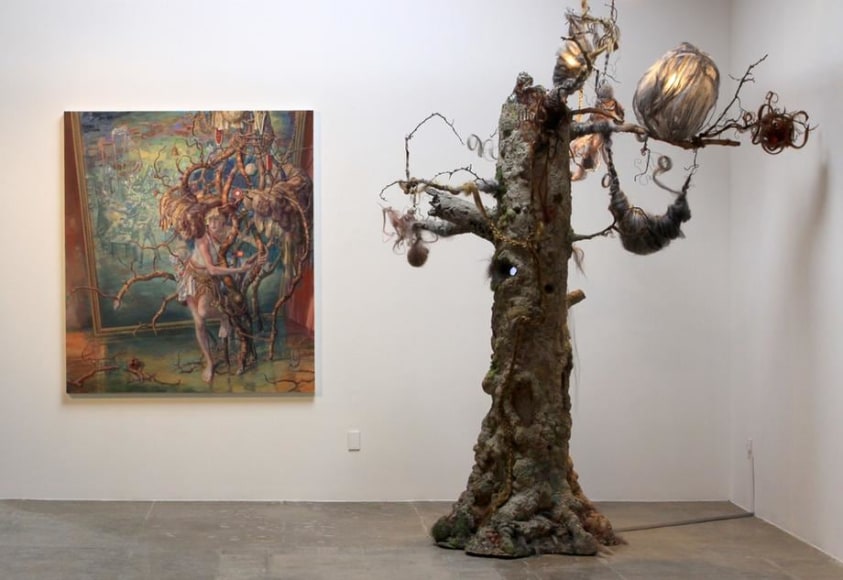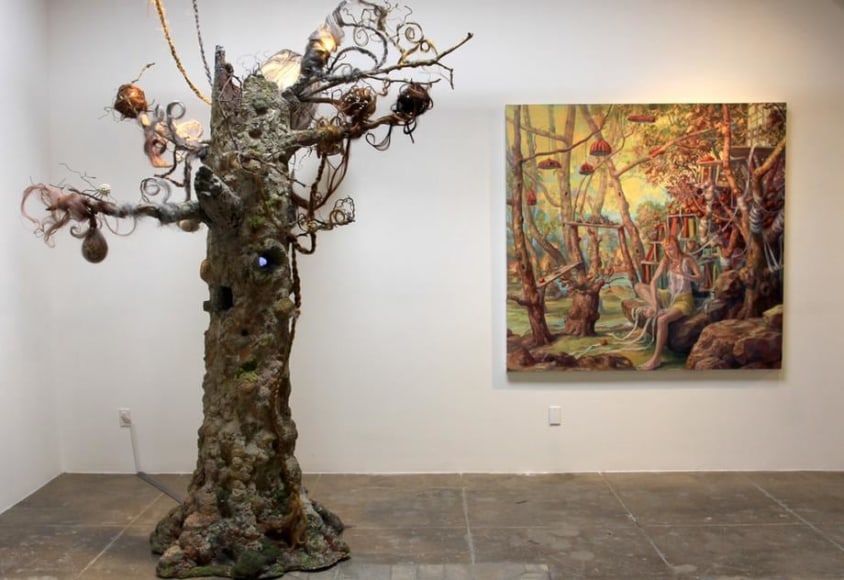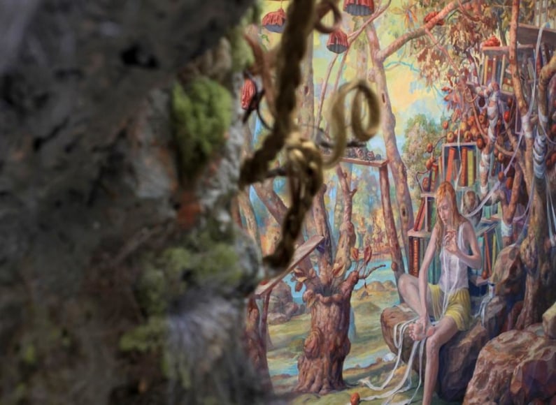 At the heart of the work is a palpable, grave concern for the environment. Issues of climate change, overpopulation and ecological imbalance are presented in highly ornate, dreamlike tableaux, rife with symbolism and allegorical implication. Although Heffernan’s compositions carry a clear reverence for the style and tradition of historical narrative painting, her imagery is not tethered to a specific genre, period or ideology, but rather blossoms directly from the imagination, expounding on Surrealism’s notion of the subconscious as the architect of reality.