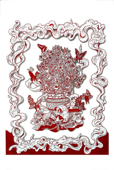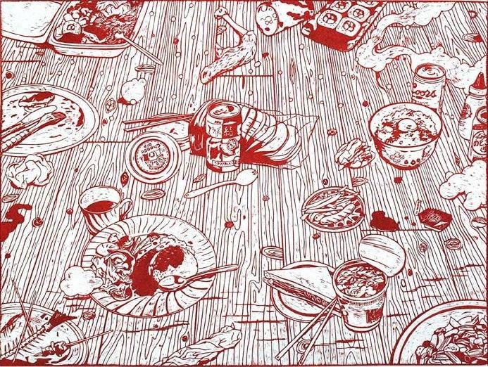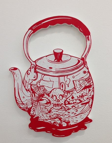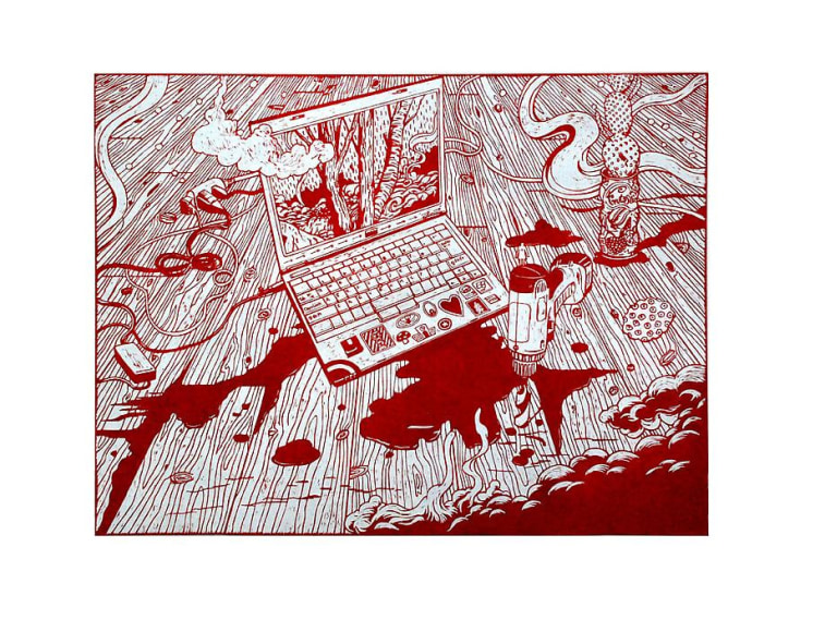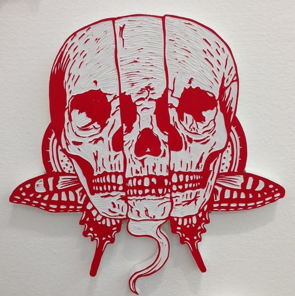 Sourcing prevalent avenues of modern Japanese culture like anime, Manga, and yokai horror films, Kenichi Yokono’s meticulous carvings contrast fraught notions of globalization and consumerism with the overwhelming "cuteness" (or kawaii) found in popular Japanese consumer culture. Phantasmagorical and raw in nature, Yokono’s work is rife with disturbingly ominous overtones and explicit imagery, steeped in both ukiyo-e painting traditions - à la Hokusai - and the uninhibited nature of American skate culture. Referencing possibilities of sex, death, and the paranormal, his practice confronts the complex relationship between time-honored and progressive Japanese customs through a similarly polarized color palette – referencing the (oftentimes) stark contrast between past and present.