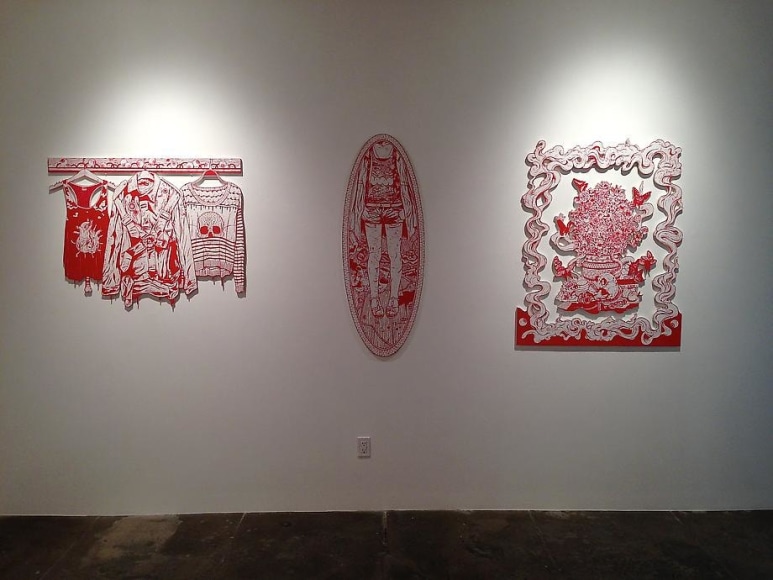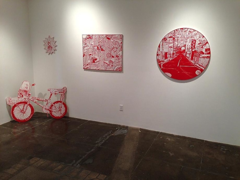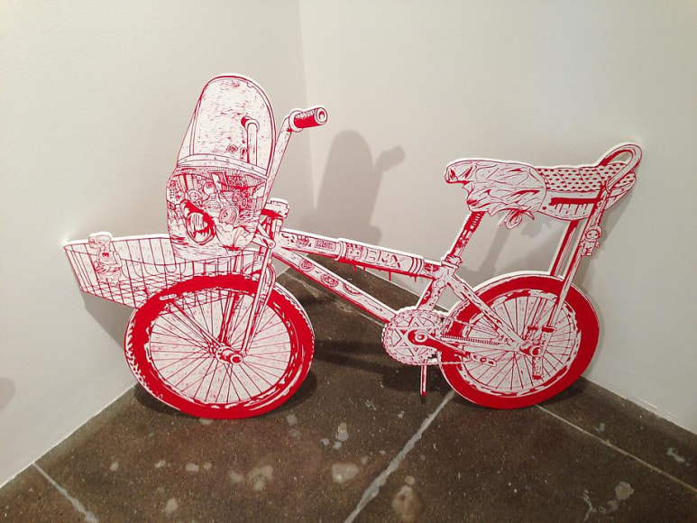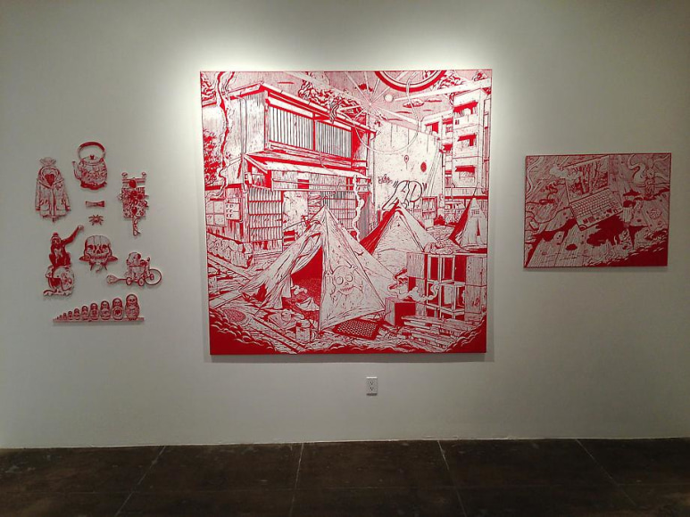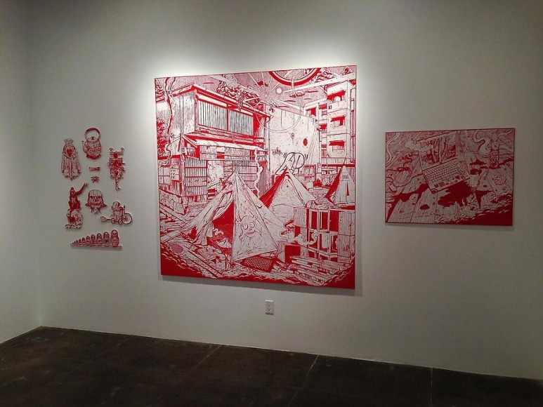 Mark Moore Gallery proudly presents "The New Suburbs," a solo exhibition of painted wood carvings by Japanese artist Kenichi Yokono in Gallery Two. This latest body of work is a continuation of the artist's trademark adaptation of traditional woodcutting through a distinctively contemporary voice. In merging the customary with the unorthodox, Yokono's bold and enchanting cartoon-like narratives illustrate quotidian and topical excerpts from "the horrors of everyday life."