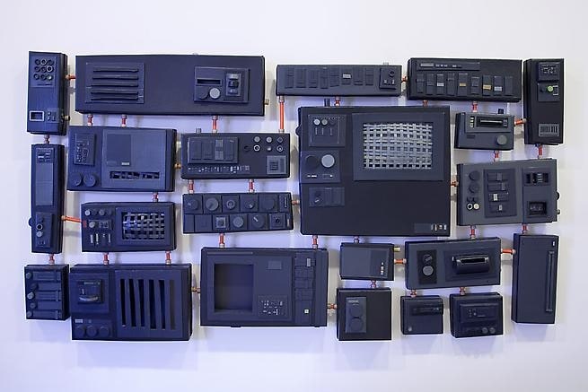 Mark Moore Gallery is pleased to present new work by young artist Kiel Johnson in the project room. Hyperbole Studios, the encompassing name Johnson gives to his creative projects, gives some insight into the intention of his work. He is largely concerned with the dynamic between the factual and the fictitious. Exploring the middle ground between the two, he creates caricatures of reality, cartoon like systems that function yet seem as though they should not, and vice versa. Johnson plays with our expectations of logical mechanisms in order to prompt the viewer to ask questions, although, as he says, 'not deep, analytical questions, but strange, funny questions'.