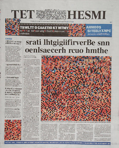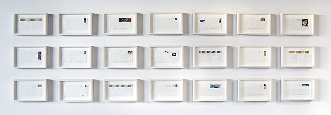 Mark Moore Gallery is pleased to present new works by emerging artist Kim Rugg. Rugg's work involves reducing and dismantling an object to its most elemental parts and then reconstructing it to reveal new meanings, to obliterate original ones, to change or destroy its function and to prompt the viewer to consider the familiar from an entirely new perspective. Often this method of deconstruction and reconstruction becomes politically charged. Her newspaper works – through her removal of the message – allow the viewer to consider the vehicle for the message, to contemplate the unquestioned ephemera of the day to day. Rugg exposes the hidden meaning within each structural component, and shows how the information we process is "informed" before we even begin to think. By demonstrating the ease at which information can be rearranged and altered, Rugg calls into question what is commonly assumed to be neutral documentation. Somewhat paradoxically, Rugg's stamp and envelope pieces - whilst visually being very different - retain their original function; they are sent through the mail unperturbed. Consequently, these works are far more subversive as, to a degree, they actively undermine established, regulated systems. Rugg's work inspires the viewer to not only reconsider, but perhaps to even challenge, what is so casually understood as the accepted and unchangeable.