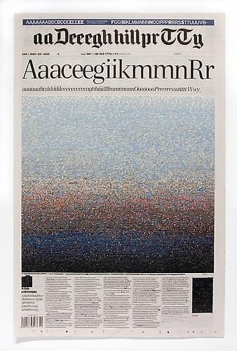 Mark Moore Gallery is delighted to announce a sophomore solo exhibition of new work by Kim Rugg. With surgical blades and a meticulous hand, Rugg dissects and reassembles newspapers, stamps, comic books, cereal boxes and postage stamps in order to render them conventionally illegible. The front page of the LA Times becomes neatly alphabetized jargon, debunking the illusion of its producers' authority as much as the message itself. Through her reappropriation of medium and meaning, she effectively highlights the innately slanted nature of the distribution of information as well as its messengers. Rugg will also debut several new hand-drawn works alongside wallpaper installations, both of which toy with authenticity and falsehood through subtle trompe l'oeil.  Her work can be seen in the National Gallery of Art (D.C.) and the Frederick R. Weisman Foundation (CA), among other collections.
