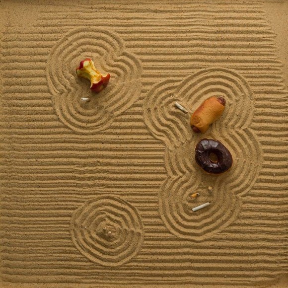 In "Staycation," the group plays on the iconography of the Zen Garden, as seen through the eyes of western popular culture. Creating a purposely-mediated experience of “Zen,” the installation poses as a pre-packaged version of what could have been a meaningful experience, if the consumer had bothered to leave the house. Like the screensaver images of peaceful monuments floating across a laptop, the imagery plays on a desire for escape, but also immediacy—one desire ruling out the other. The result is a razor sharp wit interpretation of a very American mixture of banality and good intentions -- an eagerness for a respite from the mundane, without the will to see it through.
