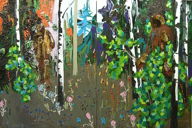 Kim DorlandMeeting, 2009acrylic, oil and fur on wood panel96 x 144 inches