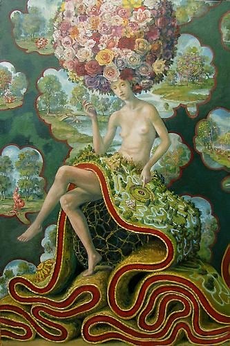 Yigal OzeriUntitled; Jessica with Vines2009Oil on Paper60 x 42 inches (152.4 x 106.68 cm)