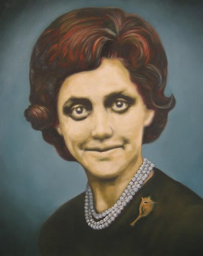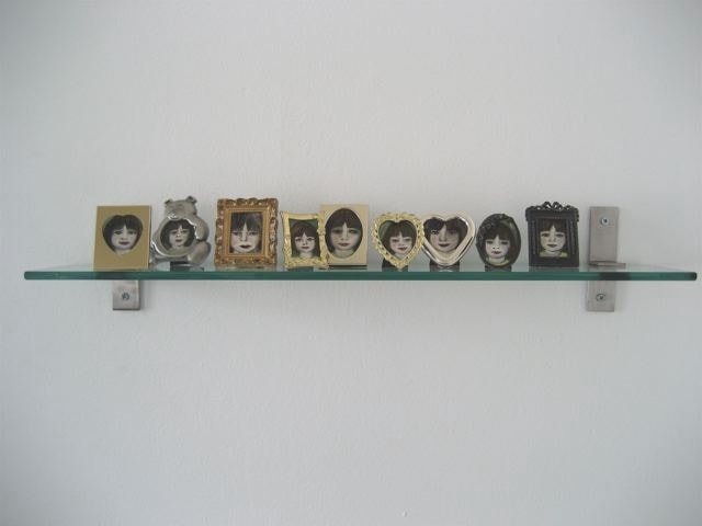 oil on canvas, found frame and glass shelf