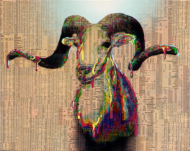 stock listings, ink, acrylic, gel and spray on canvas