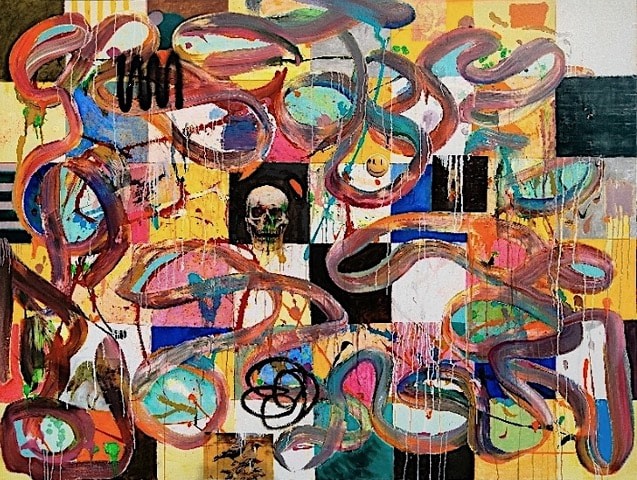 A painter with works that explore mortality, existential drive, class & political sub-texts, tribalism, sub-cultural iconography and masculine identity, he has exhibited throughout the world including Los Angeles, New York, London, Amsterdam, Paris, Stockholm, Berlin, Istanbul, Sydney, Beijing, Tokyo and elsewhere, and is represented by Patrick Painter, Inc, as well as the Durden & Ray collective in Los Angeles. He is also represented by TW Fine Art in Brisbane, Australia, GCC Arte Contemporaneo in Merida, Mexico, The Farm & Distillery in Berlin and also works with ICFA in Beijing, Gallery Lara, Tokyo, S Gallery (LA and South Korea) and Shatto Gallery (LA). His work has also been shown at art fairs including The Armory Show (NYC), The Stray Show (Chicago), The Art Los Angeles Contemporary, Hong Kong Art Fair, Clavo Art Fair (Mexico City) the Los Angeles Art Show, Supermarket Art Fair (Stockholm), QiPO (Mexico City) and Miami Projects (Miami) and in both the Yokohama Triennial and 13th Istanbul Biennial parallel events.