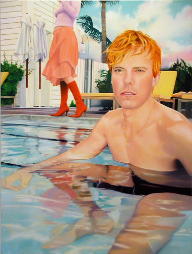 Schmidbergers’s paintings are slick, informed Pop imagery depicting youth culture in all its excessive forms: lust, boredom, drama, erotic, narcissistic, and ravishing beauty. It is the use of beauty that is the artist’s curve ball; the precision in his use of drawing and painting, creating surfaces that are immaculate and jewel like, shimmering with the imagery of his peers. What appears to be as ordinary as the snap shot composition becomes a hyper-colored paradise of youth, simultaneously exalted and toxic. It is poison perfection, a kind of carnal, cinematic portraiture.