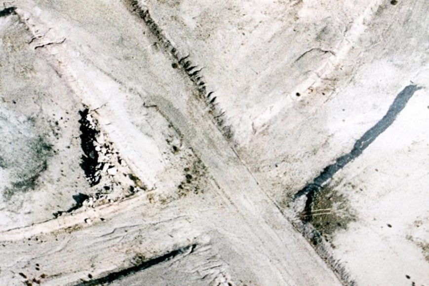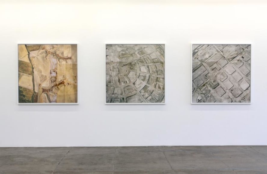 Maisel was commissioned to photograph the city of Toledo, Spain, for ToledoContemporánea, an exhibition created to commemorate the 400th anniversary of the death of the painter El Greco. The Fall is Maisel’s personal response to the landscape between Toledo and Madrid, in which he reveals topographies that have been aesthetically deranged and environmentally impacted by industrial use. From abandoned construction sites in Vicalvaro, ashen extraction zones in Borox, and crosshatched fields in Fuensalida, Maisel constructs a hallucinatory and alien worldview. Speaking to this, the artist says, “The baser the terrain, the more susceptible it is to contemplation, and the more complex it becomes as subject matter; I consider my pictures not as simply documents of these blighted regions, but as poetic renderings that reflect the human psyche that made them.” Maisel’s painterly abstractions in The Fall reference a variety of sources, from the landscapes of Richard Diebenkorn to the lunar renderings of NASA.