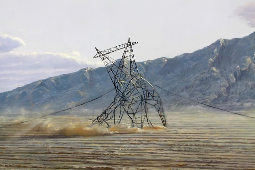 Mark Moore Gallery proudly presents "Terraformer," an inaugural exhibition of paintings by Brooklyn-based artist, Jean-Pierre Roy. Despite his photorealistic prowess, Roy's terrains are sourced from pure imagination – cinematic dystopias through a Dutch Golden Age lens. His Neo-Luminist panoramas engender an ominous tone, a sense of uniquely human ruination evident through melting icecaps, crumbling towers, and purging smokestacks. In this new body of work, Roy considers the beauty in catastrophe, as well as the repercussions of our fallible heedlessness.