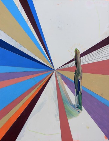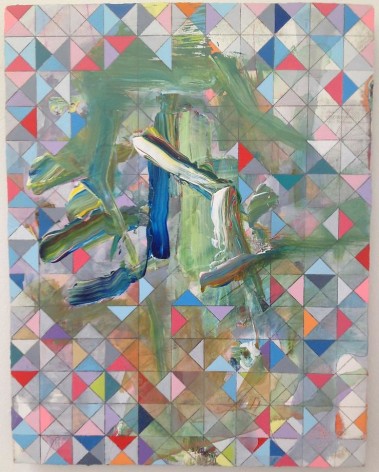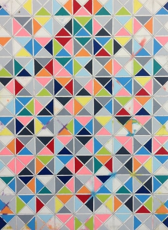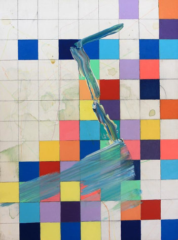 Since the war between "fine art" and "design" broke out - a distinction increasingly diminishing in the advent of accessible technology - context has been the dividing faction between the two designations. Through his intimate canvases, Lester Monzon acts as an analog commentator on this quarrel, and poses the question of whether or not such denotations are truly relevant or purposeful in art making. Historically, Monzon's colorful gesticulations conceal sections of rigid patterning, a tête-à-tête between so-called "abstract expressionism" and "hard-edge abstraction" that implies a gentle lampooning of the taxonomic tradition behind art "movements." Monzon upends the formalism and segregation innate to the fine art world, and fabricates a composite genealogy of painting - a pithy resolution to an otherwise vapid debate. Monzon's luscious brushstrokes slyly creep into a Hirst-esque field of dots or Noland-like plane of stripes, like the resurrection of a once-declared dead practice through a satirical hand. In this show, Monzon applies this critique of contextual art practices and assimilation to mark-making in public spaces; be it graffiti on tiles in a public bathroom, stains on the sidewalk, or the popularized notion of "street art." In questioning the validity of one set of forms and social framing over the other, Monzon facilitates a larger dialogue about the dissemination of status, and the dominant voices of endorsement.