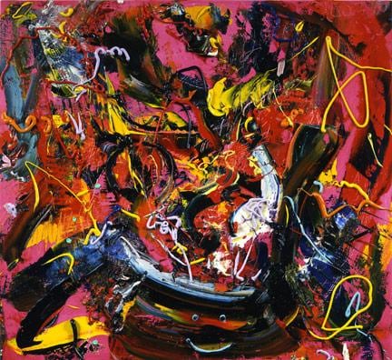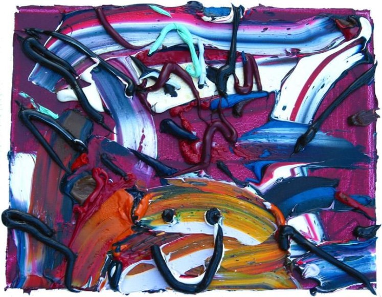 The Mark Moore Gallery is proud to present the third solo exhibition by Michael Reafsnyder. With out sacrificing an ounce of energy and wit, the artist has enlarged his format to a grand and massive scale, and pushed the possibilities of chance and architecture with mounds of paint. Previously the work could be seen in the lineage of the Cobra School (Asgar Jorn, etc), but now Reafsnyder references odd bedfellows – from Pollock, to Carroll Dunham and SpongeBob SquarePants. . The paintings are not about traditional brushwork; the surfaces are chopped, squashed, troweled, and swept. The content in turn, and more importantly, is an about face - moments of gleeful pleasure and bitter irony smeared together. The former intimacy of Reafsnyder’s work is now a bold declaration of chaotic happiness, a kind of abhorrent pleasure of the creator, and the act of creating. The area of the private practice is now a public arena both in scale and in pitch.
